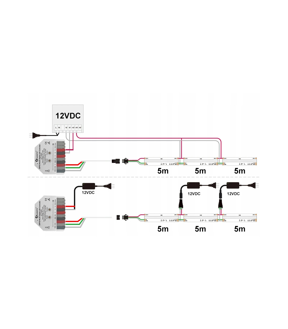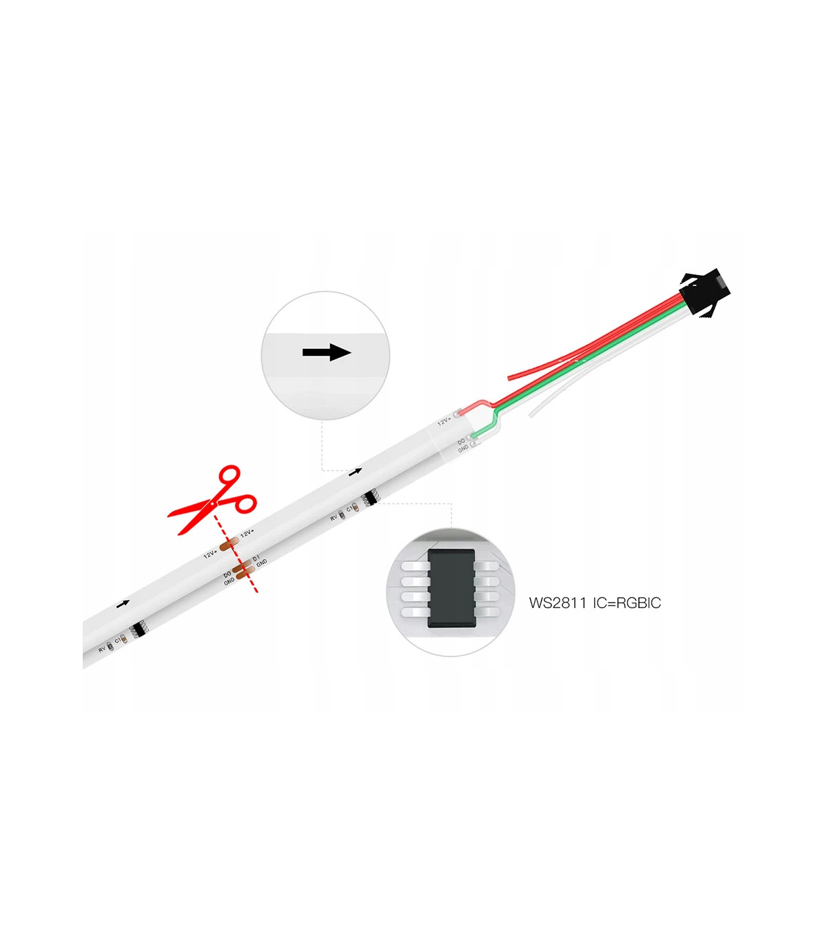 UWAGA! Aby sterować taśmą konieczny jest sterownik do taśm cyfrowych taśm z obsługą taśmy WS2814 (brak w zestawie).
